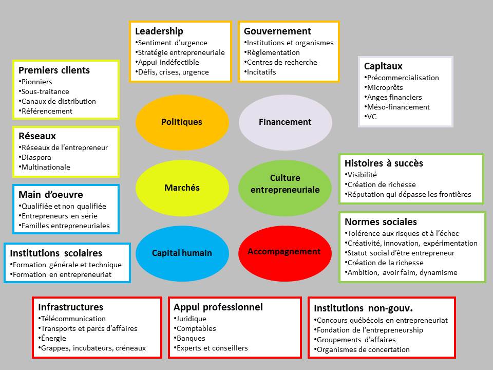 - Est-ce que les gouvernements ont mis sur pied des institutions efficaces reliées à l’entrepreneuriat (instituts de recherche, liaisons outremer, forum, prospection)?