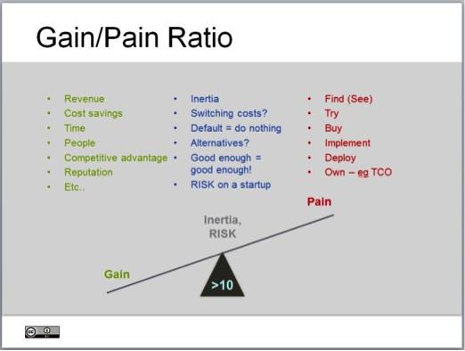 On mélange souvent les deux. Les clients achètent des bénéfices et non des caractéristiques. Les bénéfices sont ce que les clients vont recevoir en faisant affaire avec vous. Ils peuvent recevoir de la joie, un gain d’expérience, faire des économies, être plus performants… en échange des irritants (pain), par ce que cela leur demandera du temps, créera de l’inconfort, affectera leur confiance (risque d’être déçu), ou coûtera de l’ argent.