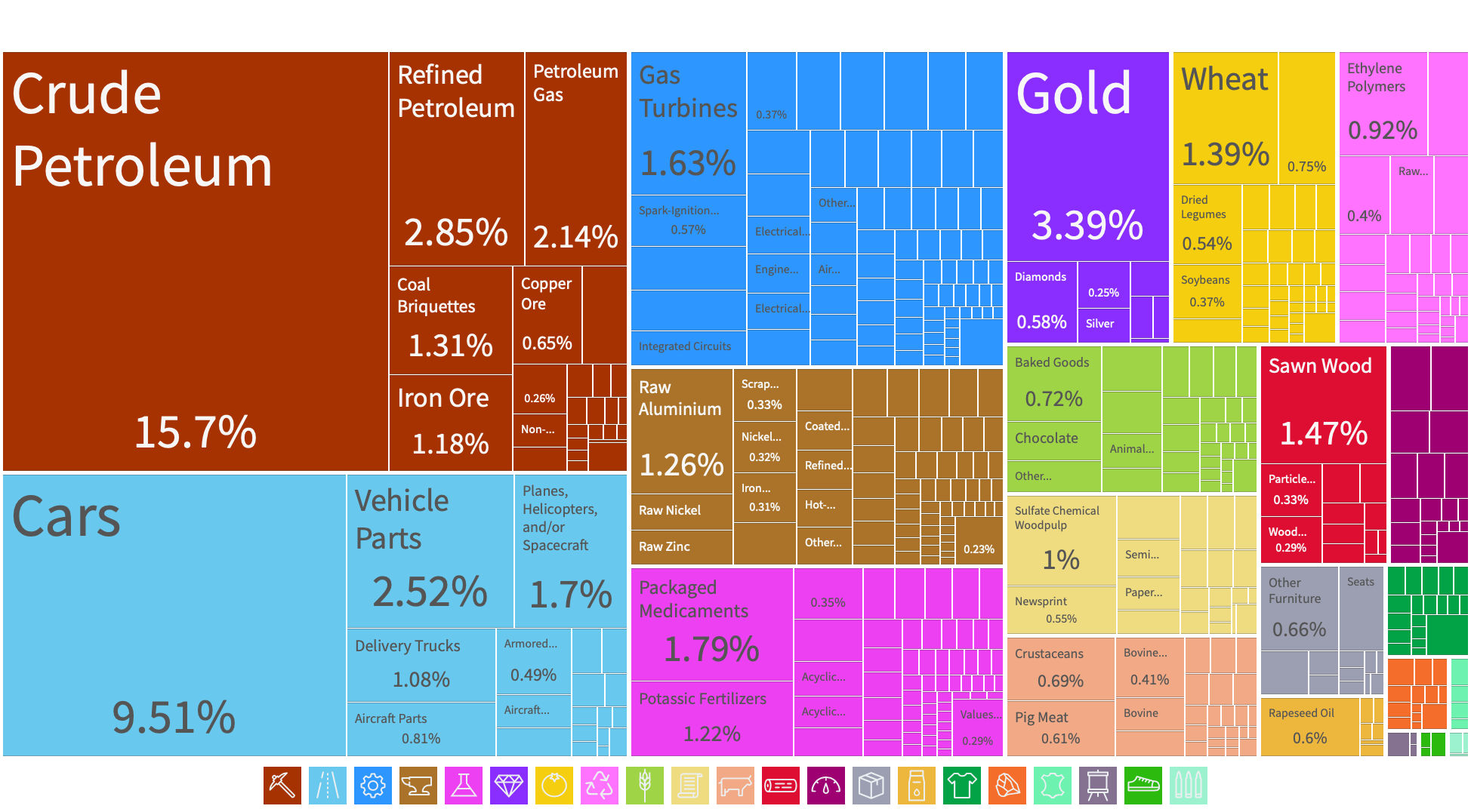 La complexité économique d’un territoire est connectée à la complexité des produits qu’il exporte. L’indice de complexité du produit (ICP) classe la diversité et la sophistication du savoir-faire requis pour le fabriquer. Une valeur ICP élevée signifie que le produit est complexe à fabriquer parce qu’il nécessite un haut savoir productif (expertises, transferts de connaissances, chaîne de valeur, technologie…) et qu’il y a peu de territoires qui possèdent ce savoir-faire. À l’échelle mondiale, la moyenne de tous les produits fabriqués équivaut à un indice ICP de 0.