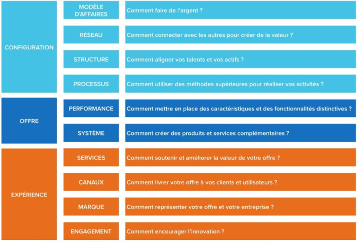 Les innovations de configuration concernent les modèles de profit, les réseaux, les structures et les processus. Elles englobent les activités « menées en arrière-plan » nécessaires à la mise au point de l’offre.