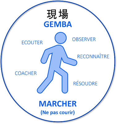 Gemba walk désigne l’action d’aller voir le processus réel, de comprendre le travail, de poser des questions et d’apprendre sur place.