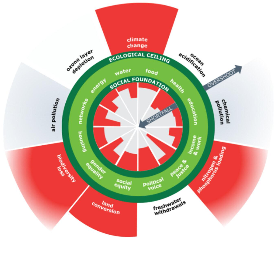 L’économie du beignet est un cadre qui propose une nouvelle façon de penser le développement économique et le bien-être. Il est basé sur le concept d’un diagramme en forme de beignet qui montre les niveaux minimum et maximum des besoins humains et planétaires. L’anneau intérieur représente le fondement social, qui comprend les droits et les nécessités de base de l’homme, tel que la santé, l’éducation et la justice. L’anneau extérieur représente le plafond écologique, qui comprend les limites planétaires qui définissent un environnement sûr et stable, tel que le changement climatique, la biodiversité et l’eau. L’objectif est de rester dans le beignet, où tout le monde en a assez, mais pas trop, et où l’économie est au service des gens et de la planète.
